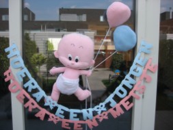 Ooievaarsnest: Deze leuke eyecatcher 2 weken voor de bevalling plaatsen met het bordje landingsplaats, na de geboorte komt de ooievaar er op met baby en blijft het nest nog 2 weken staan. De huurprijs van dit nest is voor 4 weken € 35,00, de borg bedraagt € 50,00