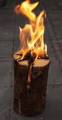 De fakkel wordt ontstoken middels een aanmaakblokje in de kern van de stam met een (meegeleverde) lange lucifer, eventueel een beetje brandgel gebruiken.